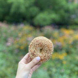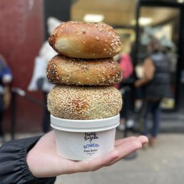 YES YES YES. this place finally made me understand what the hype was around NY bagels. showed up at 10 AM on a Saturday. there was a line but it moved very quickly. we only had to wait about 5-7 mins for our actual bagels after ordering and they came out PIPING HOT. we ate at thompson park (and walked by several groups of people also devouring their bagels) and it was so good. I got an everything bagel and split a salt bagel with my friend. we opted for a rosemary garlic butter which was the right decision. i could taste every distinct note of the butter and it worked so well on a savory bagel. bonus - you can use the leftovers for cooking! such a cute spot and the staff is very efficient. they seem to also enjoy working there with our cashier singing to music and having a great friendly vibe.