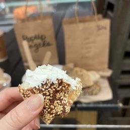 BEST BAGELS EVER!! They have a minimum of 3 bagel requirement, but for $12, you get to choose 3 bagels and a cream cheese schmear, not too bad! The bagels are a bit on the smaller side, but hefty! 'Everything Bagels': Nice crispy texture on the outside, and the inside was what sold it for me- it was so FLUFFY!! And I loved that they were hot and fresh! 'Scallion Schmear': I was even more impressed with this! It was creamy, savory, and you can taste the fresh scallion flavor! They also give you a really good amount of cream cheese in the container! When I think of a NYC bagel, I'll be thinking of Popup Bagels!